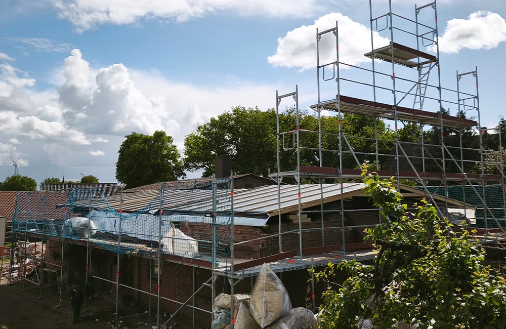 Bei diesem Gebäude aus dem Jahr 1880 wurde eine Dachseite fachgerecht asbestsaniert. Die alten Asbestplatten wurden demontiert und ordnungsgemäß entsorgt. Anschließend glichen wir die historischen Dachsparren aus und verstärkten ...